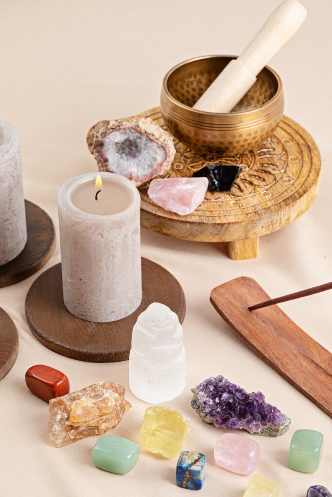 Nie. Pracujesz z prostymi elementami, które masz w domu — jak świeca, woda, sól czy naturalne zioła. Najważniejsza jest Twoja intencja i świadomość pracy z przestrzenią, nie drogie narzędzia.
